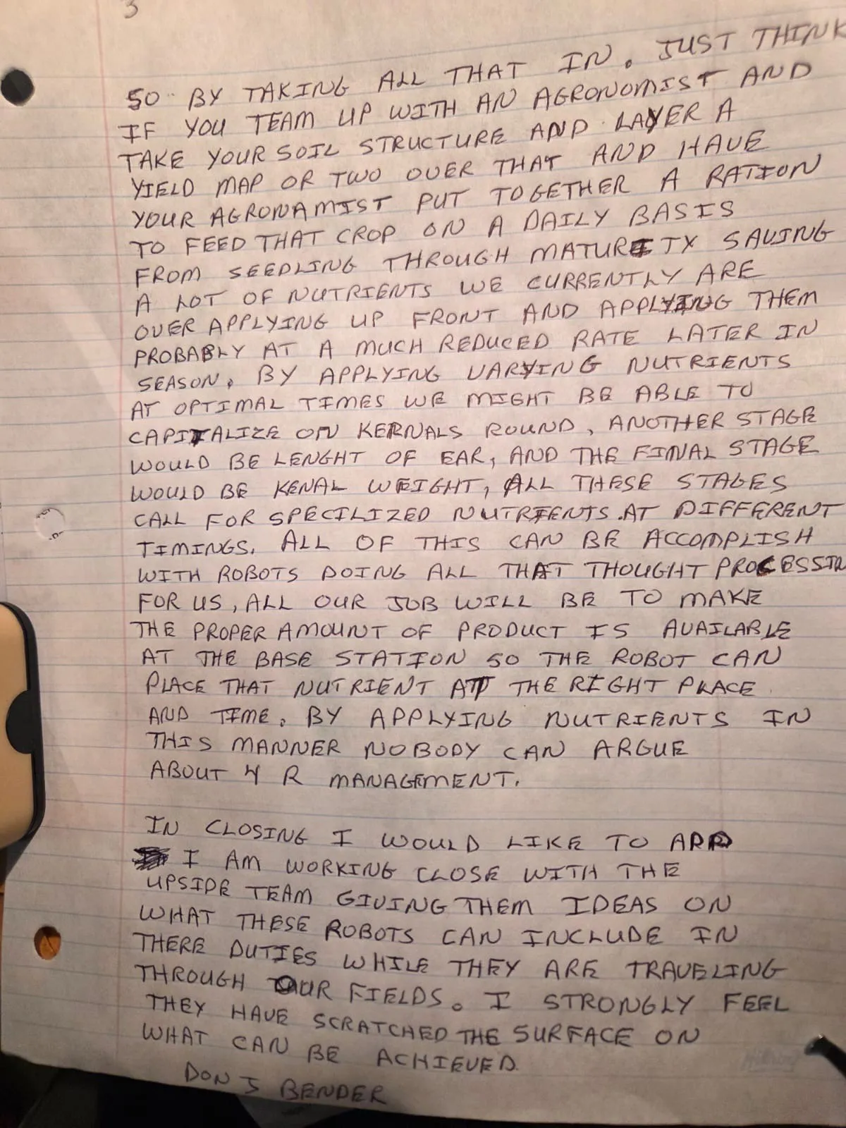 In closing, I would like to continue working closely with the Upside team — giving them ideas on what these robots can include in their duties while traveling through our fields.